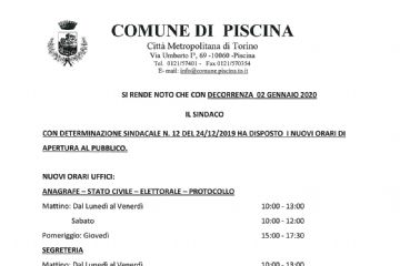 Nuovi orari uffici comunali dal 02 gennaio 2020