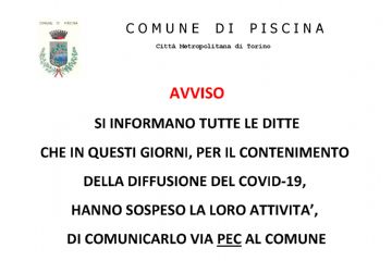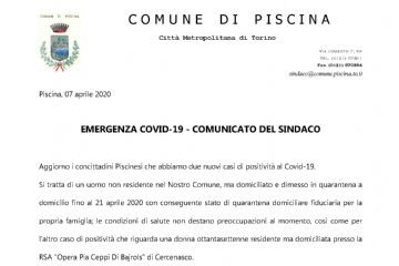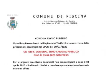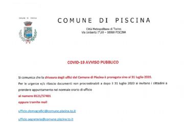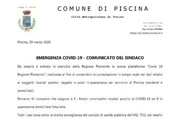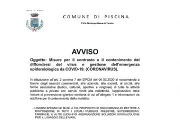 Aggiornamento situazione emergenza epidemiologica da COVID-19 per il Comune di Piscina