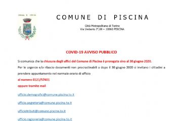 Proroga chiusura uffici comunali sino al 30.06.2020
