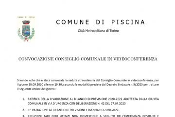 Consiglio Comunale, 29.07.2020 ore 19:00