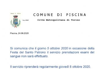 Si avvisa che il giorno 05.10.2020 gli uffici comunali resteranno chiusi per festa patronale.