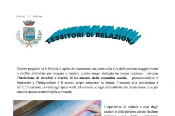 TESSITORI DI RELAZIONI. La partecipazione è gratuita. Chiunque sia interessato al progetto potrà fare richiesta di partecipazione attraverso l’assistente sociale o chiamando l’ufficio Politiche...