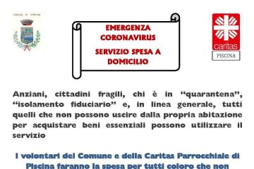 Emergenza coronavirus: a piscina alcuni volontari porteranno la spesa a casa di anziani e soggetti deboli a cui e' raccomandato di restare il piu' possibile a casa.