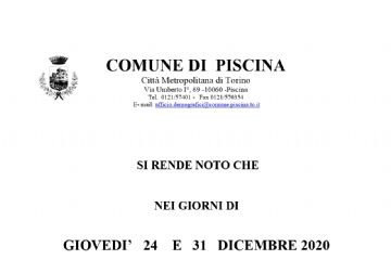 Chiusura al pubblico degli uffici comunali nell'orario pomeridiano di giovedi' 24 e 31 dicembre.