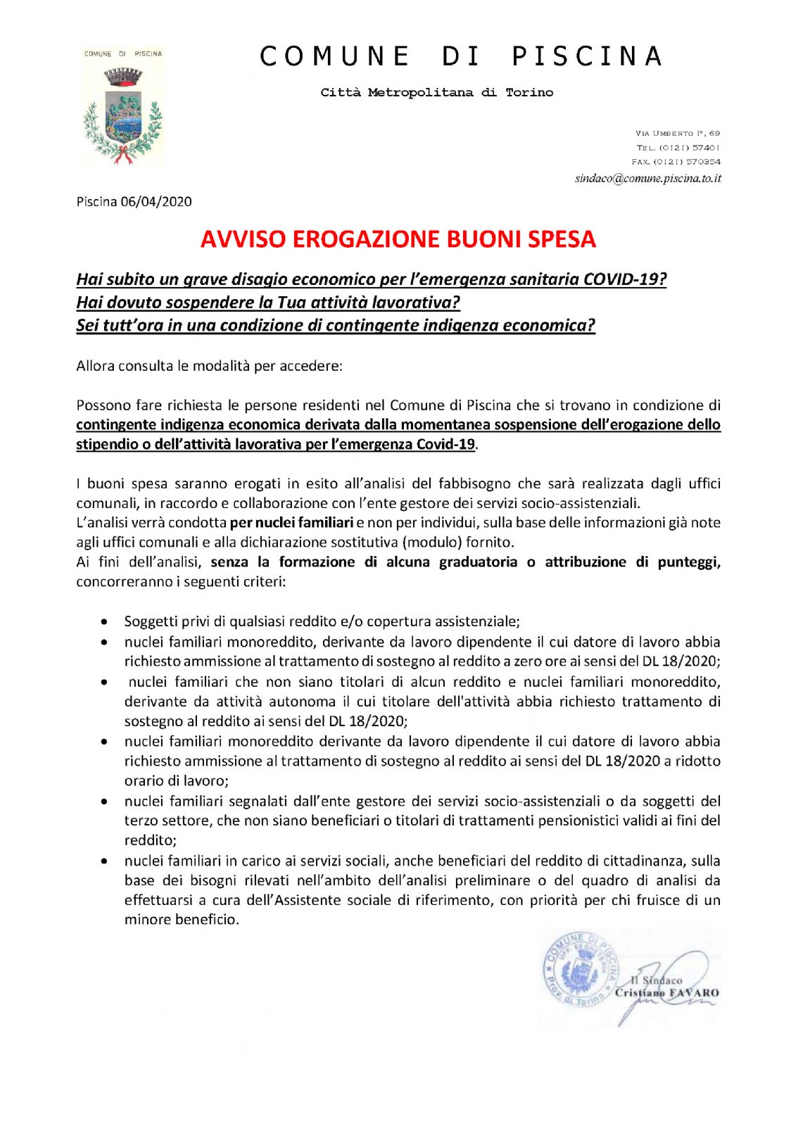 Erogazione buoni spesa