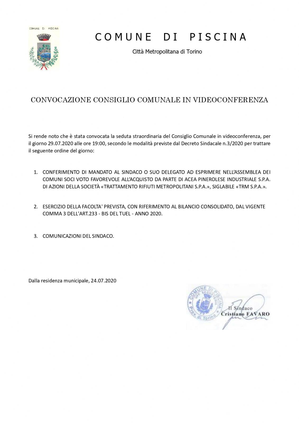 Consiglio Comunale, 29.07.2020 ore 19:00
