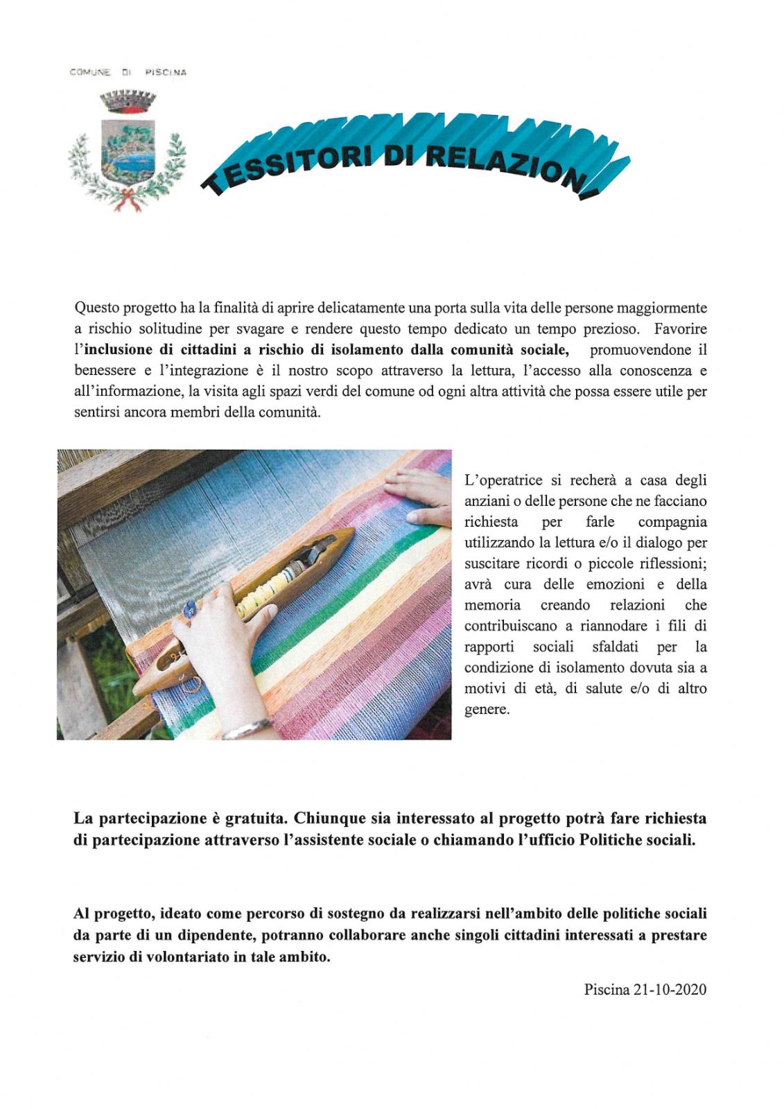 La partecipazione è gratuita. Chiunque sia interessato al progetto potrà fare richiesta di partecipazione attraverso l’assistente sociale o chiamando l’ufficio Politiche sociali.