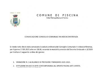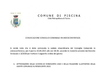 Il Consiglio Comunale è convocato per VENERDI' 30 APRILE 2021 alle ore 18:30 in modalità videoconferenza.