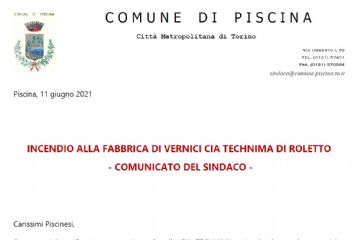Incendio alla fabbrica di vernici Via Technima di Roletto - comunicato del sindaco -