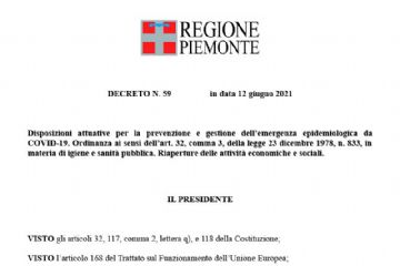 Decreto Regione Piemonte N.59 Del 12.06.2021