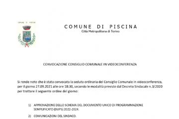 Il Consiglio Comunale è convocato per LUNEDI' 27 SETTEMBRE 2021 alle ore 18:30 in modalità videoconferenza.