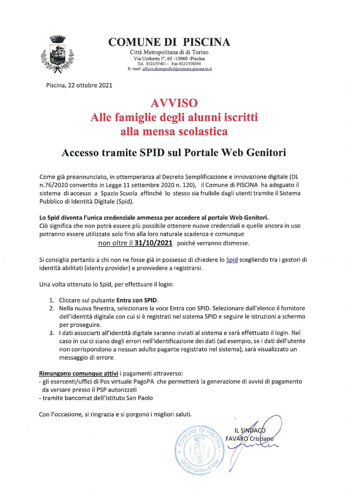 Pubblichiamo i nuovi accessi tramite SPID sul portale web dei genitori per il pagamento della mensa scolastica.