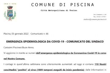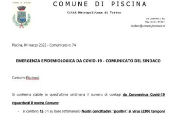 Aggiornamento situazione epidemiologica da Covid-19 per la popolazione del Comune di Piscina