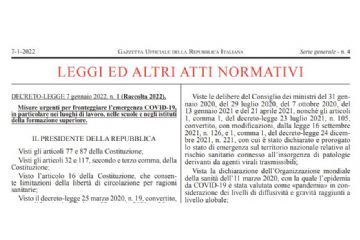 E' entrato in vigore l' 8 gennaio 2022, dopo la pubblicazione in Gazzetta ufficiale, l'ultimo decreto...