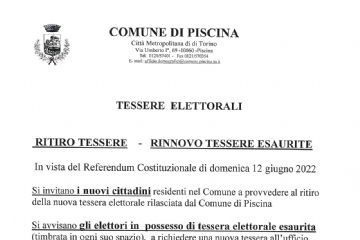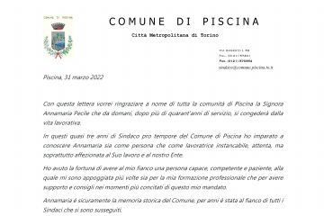 Il Comune di Piscina è subentrato in data 19/07/2019 nell’Anagrafe Nazionale della Popolazione Residente (ANPR).