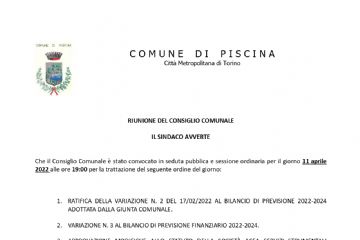 Il Consiglio Comunale è convocato in presenza LUNEDI' 11 APRILE 2022 alle ore 19.00.