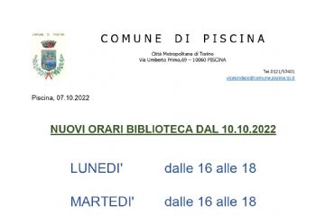 Nuovi orari della Biblioteca Comunale da lunedì 10 ottobre 2022.