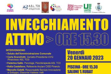 EVENTO ORGANIZZATO a PISCINA Venerdì 20 gennaio 2023 ore 15,30 Salone L'Rubat Via Umberto I, 64
