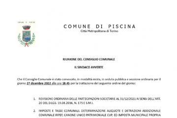 Il Consiglio Comunale è convocato in modalità mista MARTEDI' 27 DICEMBRE 2022 alle ore 18.45