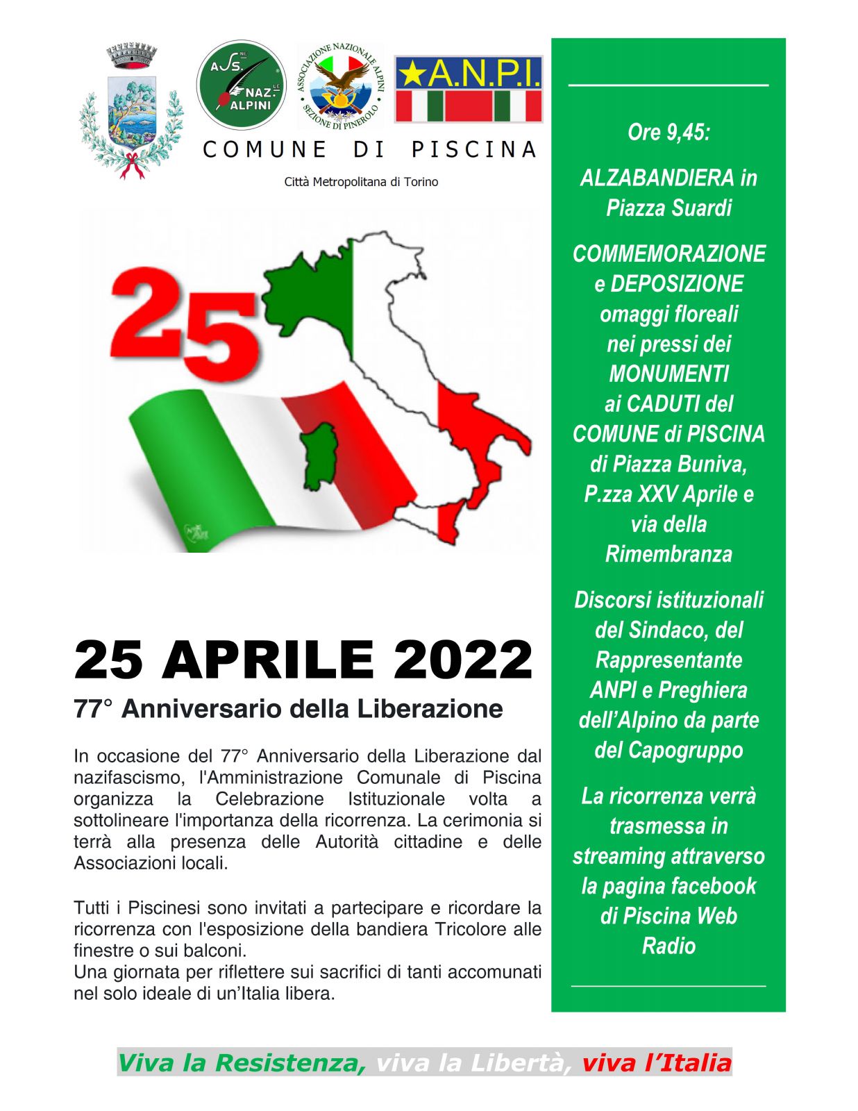 77ª celebrazione del 25 Aprile e della Liberazione dell'Italia dal nazifascismo