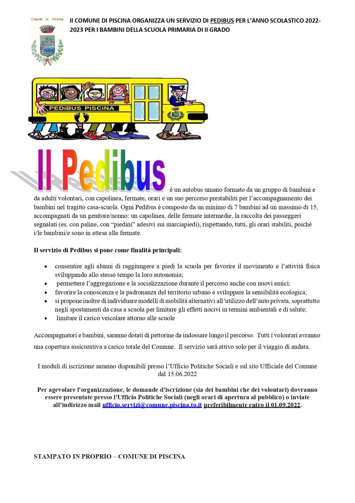Sono aperte le iscrizioni al servizio pedibus per l'anno scolastico 2022/2023
