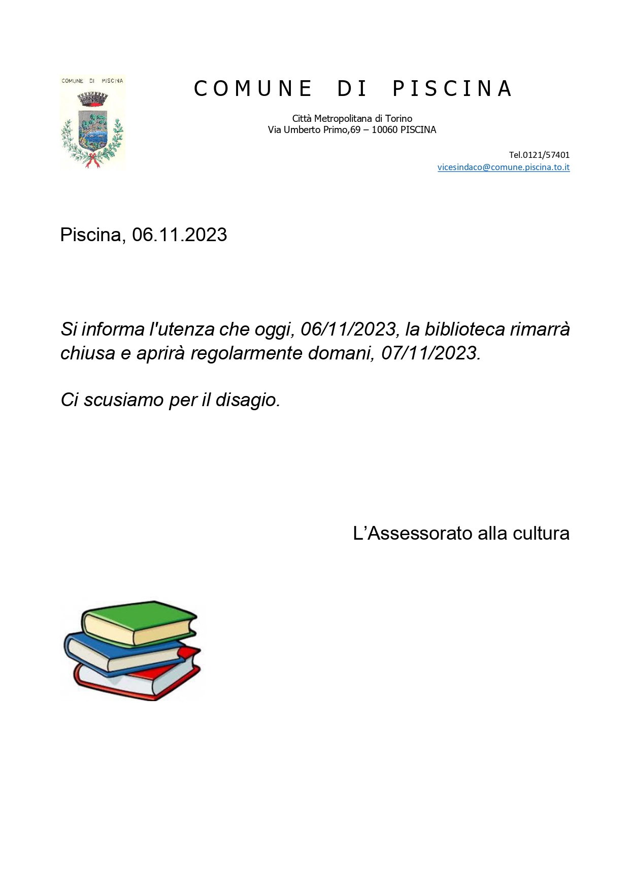 Comunicazione chiusura biblioteca 06/11/2023