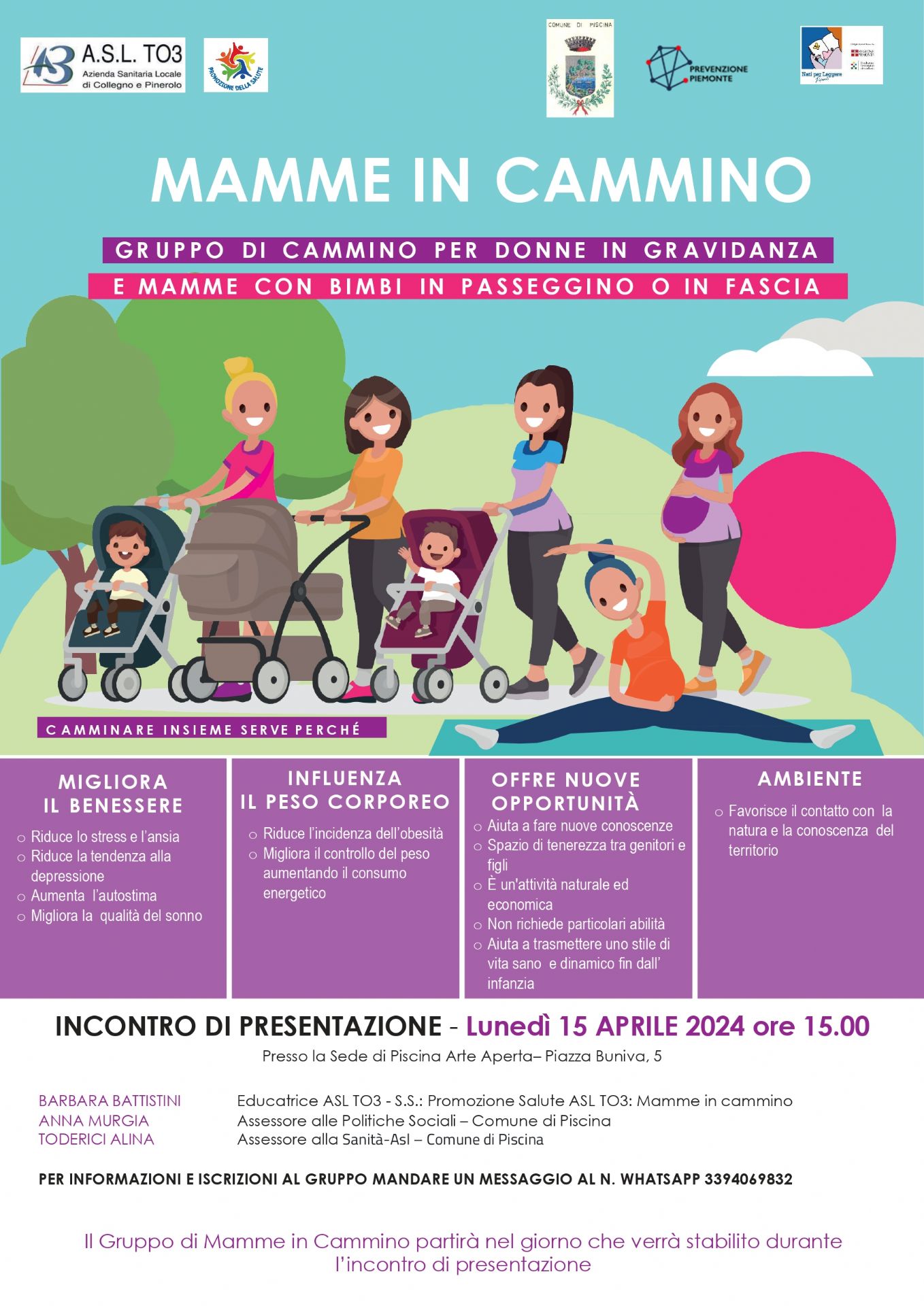 Si tratta di un gruppo di cammino che si rivolge alle donne in gravidanza e alle mamme con bimbi in passeggino o in fascia.