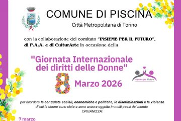 Il Comune di Piscina, con la collaborazione del Comitato “Insieme per il Futuro”, di P.A.A. e di CulturArte, invita la cittadinanza a partecipare...