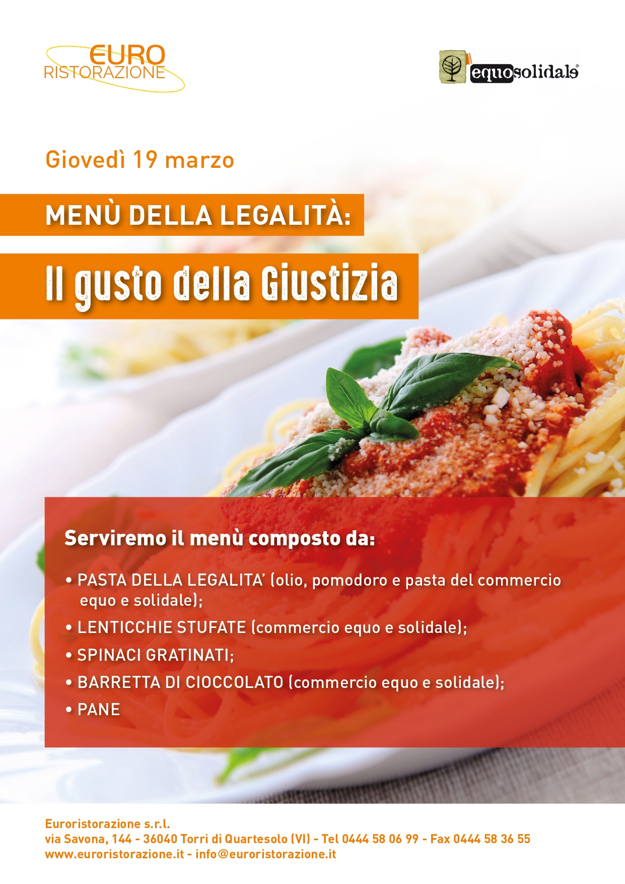 La Ditta Euroristorazione propone per giovedì 19 Marzo il menù della Legalità.
