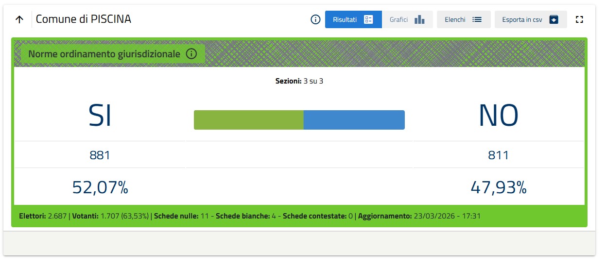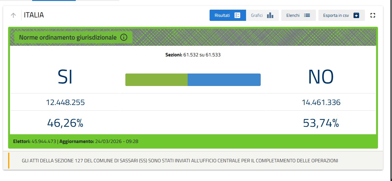 Si ricorda che i risultati sono anche consultabili al seguente link: https://elezioni.interno.gov.it/risultati/20260322/referendum/scrutini/italia/01