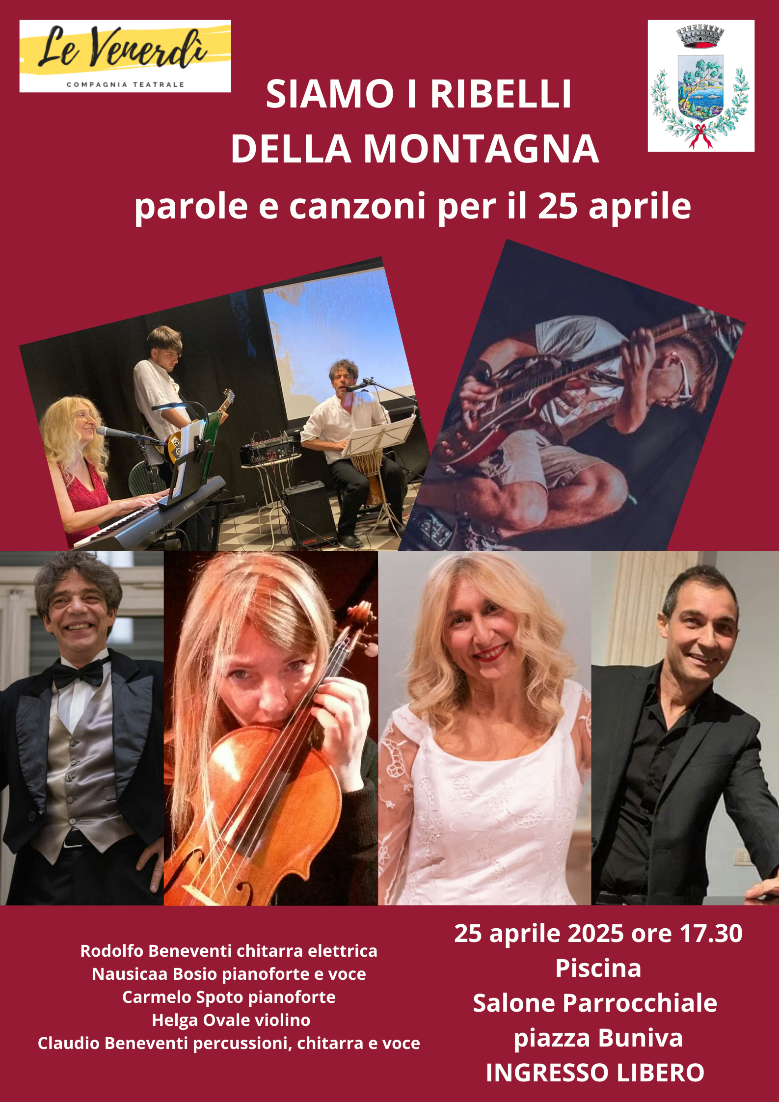 • Ore 17:30 presso il Salone parrocchiale spettacolo “Siamo i ribelli della montagna” a cura della compagnia teatrale Le Venerdì.