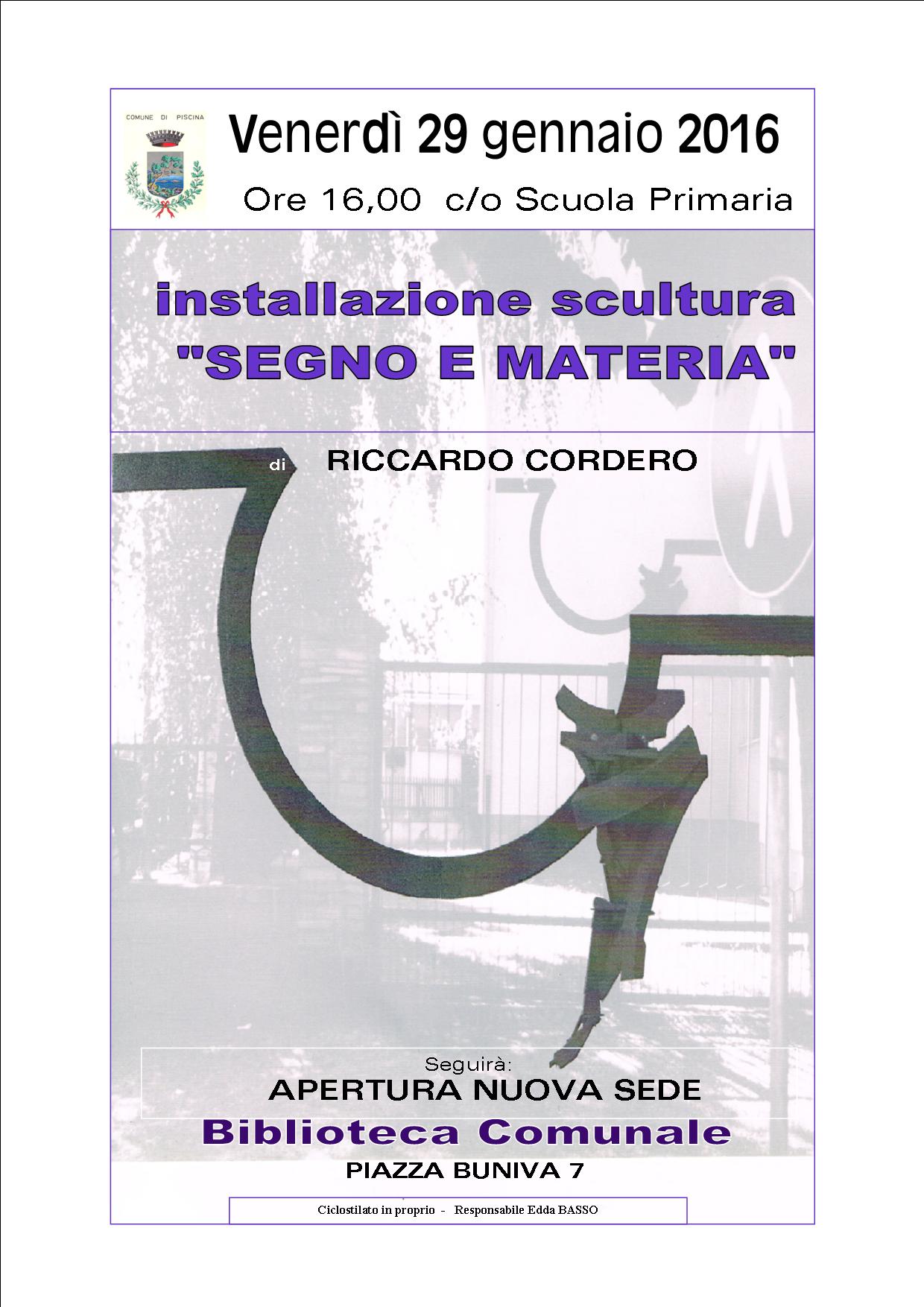 INSTALLAZIONE SCULTURA SEGNO E MATERIA ED APERTURA NUOVA SEDE BIBLIOTECA COMUNALE